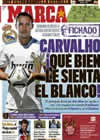 Hoy dÃa 11/8/2010 las noticias que destacamos de la versión digital de los periódicos deportivos son El Real Madrid ficha al central portugues Carvalho, por cerca de diez millones de euros y El posible fichaje de Mascherano y Ozil por el FC Barcelona, en las primeras de la prensa.