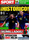 Hoy dÃa 2/7/2010 las noticias que destacamos de la versión digital de los periódicos deportivos son Sandro Rosell ya es el nuevo presidente del FC Barcelona y toma posesión del cargo indicando su deseo de universalizar al club y Maicon, Gerrard y Cole nombres propios de la actualidad del Real Madrid.